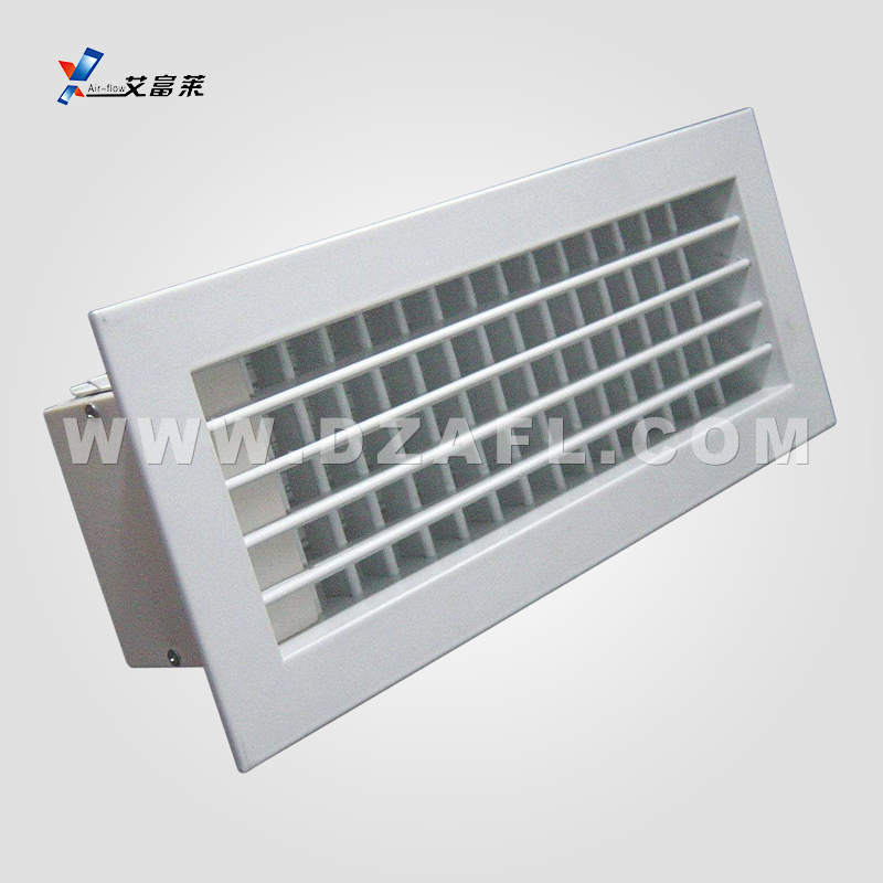 1、雙層百頁(yè)風(fēng)口,雙層百頁(yè)風(fēng)口一般作為送風(fēng)口,也可直接與風(fēng)機(jī)盤管配套使用,廣泛用于集中空調(diào)系統(tǒng)的末端,還可以與對(duì)開多葉調(diào)節(jié)閥,用以調(diào)整風(fēng)量。