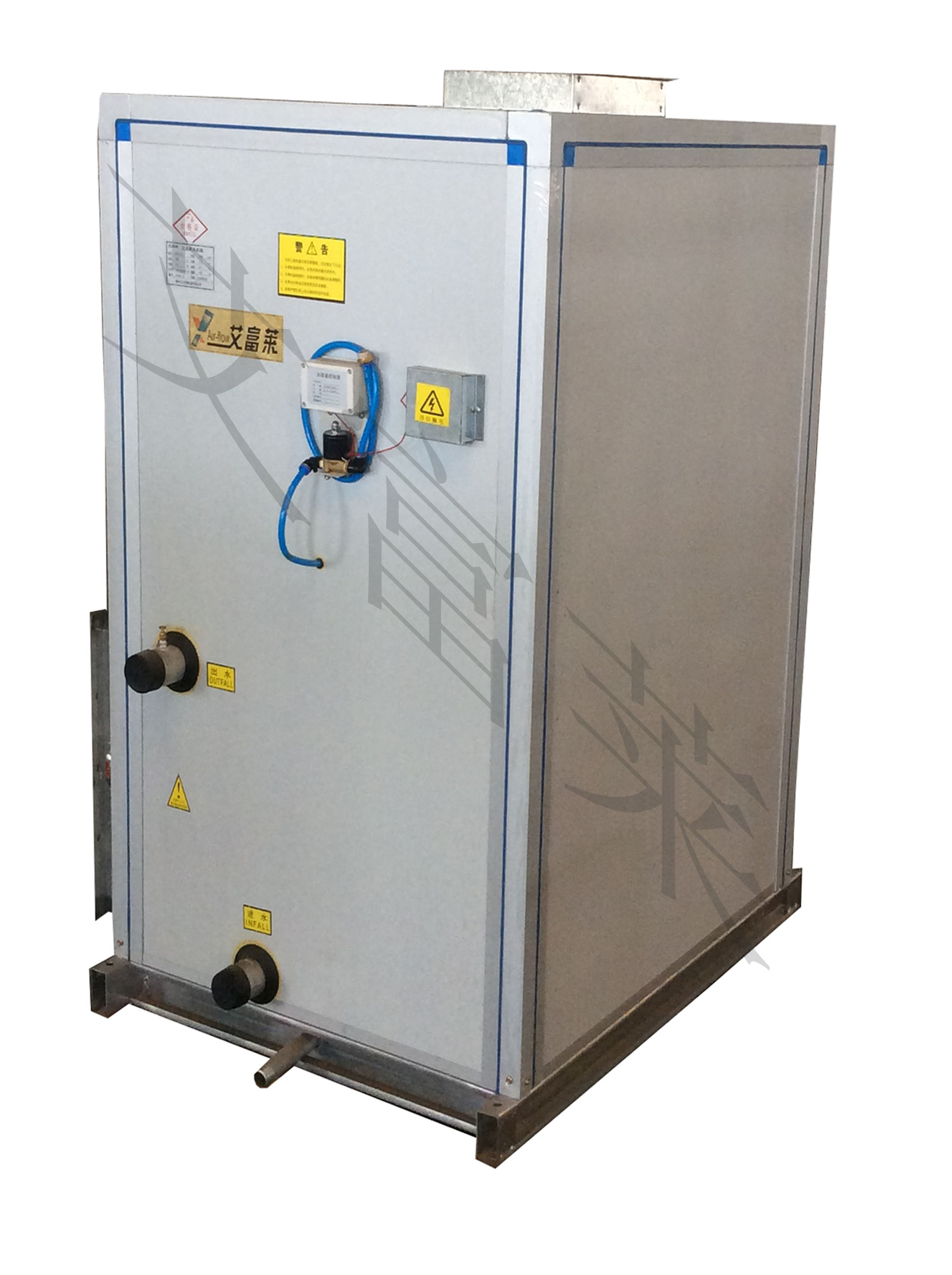 五、安裝便捷:1、機組整體裝式設計,結構緊湊,占地省,安裝時只要接通冷卻水系統和電源即可調試、試用;2、機組進出水管左右位置可根據施工現場的需要自由的變換。